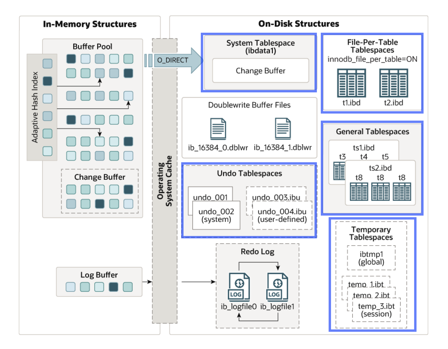 InnoDB에는 다음과 같이 5가지 종류의 Tablesplace가 존재한다.