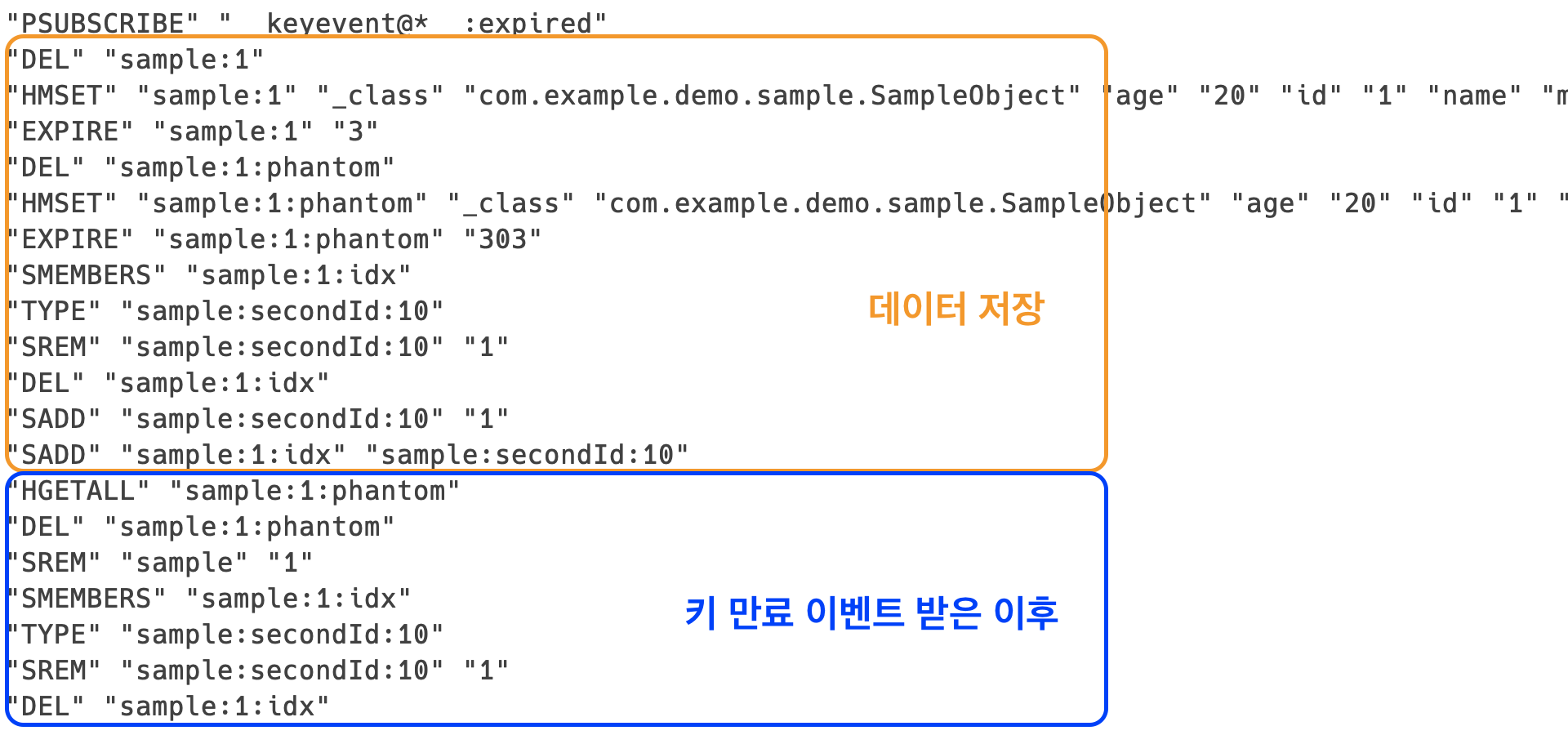 - 이후 원본 데이터가 만료되면, 해당 이벤트를 수신한 뒤 사본 데이터로부터 만료된 원본 데이터의 정보를 받아 key set에서 지워준다.